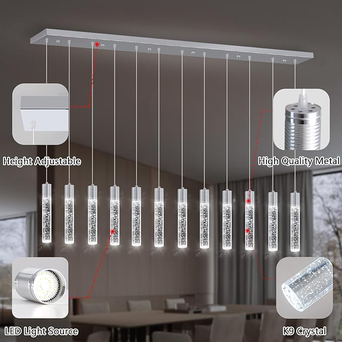 • 【K9 bubble crystal pendants】High quality aluminum lampshade with chrome finished round base. Provide bright lighting and modern design looking for your kitchen, island, dining room, bedroom, hallway, bar, over dining table