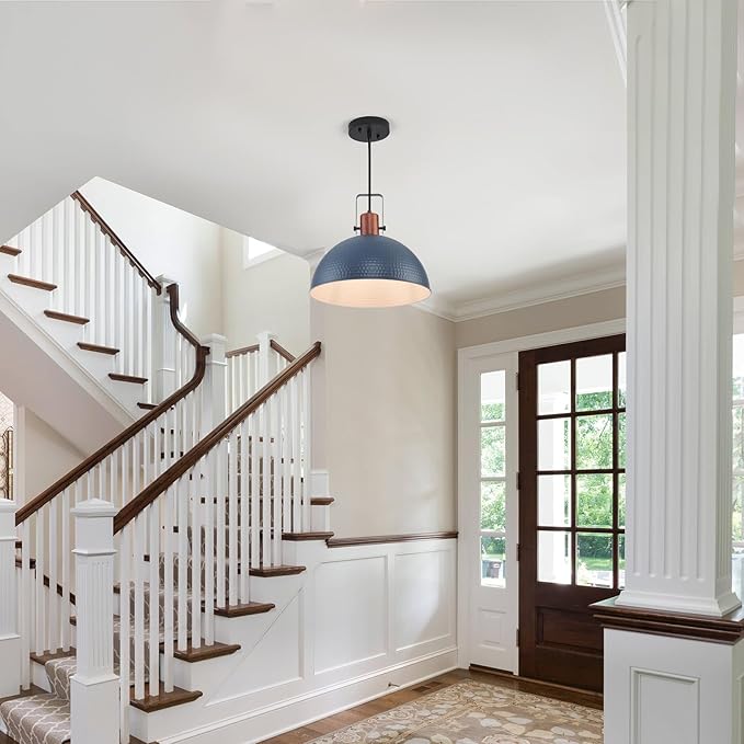 • [Industrial & Vintage Design]: 2-Light industrial farmhouse pendant light fixtures with adjustable cord,Hammered blue finish retro-style dome shade, this antique pendant lighting is made of sturdy metal construction white inner finish.The vintage pendant lights is ideal for home, dining room, kitchen island, warehouse, entryway, corridor, restaurant, cafe, bar, club, barn, working bench.