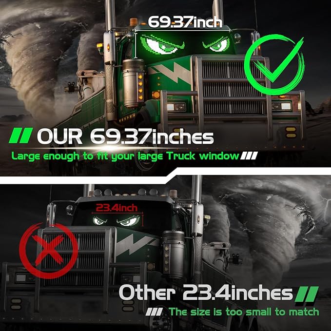 • SIZE SUGGESTION:We have multiple sizes led eyes for car windshield to choose from, and for motorcycle, we recommend choosing13.7x4 inches; For cars and small truck, we recommend choosing 2Pcs 23.4x4.7 inches or 52.36*7.56 inches; For medium truck and semi truck, we recommend choosing 69.37*7.56 inches; If you don't know how to choose, you can contact us to recommend a suitable size for you.