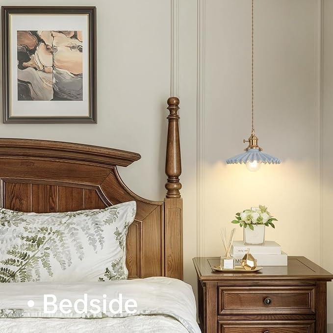 • 【Blue Ceramic】Blue ceramic lampshade not only has good light transmission, but also can evenly scatter light, reduce glare, and provide soft and comfortable lighting effects. At the same time, the high temperature resistance of the ceramic material also ensures the safety of the lamps.