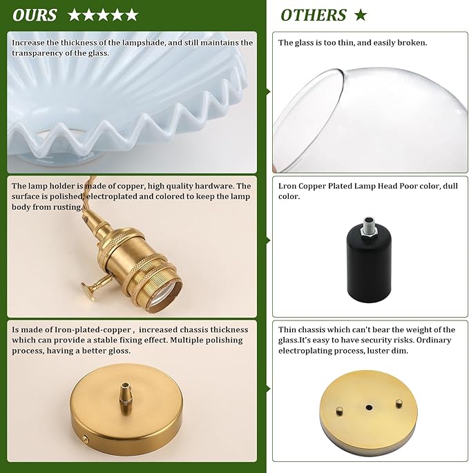 • 【Ingenious Design】The knob switch on the pendant light is exquisitely designed to retain the characteristics of the retro style while providing the convenience of modern life. You can easily turn the light on and off by simply turning the switch. And the wire is wrapped in a rubber coating with fabric covering for safety and reliability.