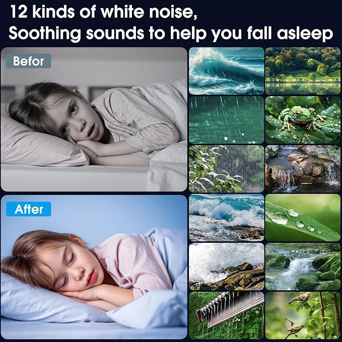 • 2.12 natural white noises and soothing sounds: our jellyfish lamp has 5.0 Bluetooth speakers and 12 types of white noise (the sound of sea waves, deepmountains, natural frogs, medium waves, forest birds, water flow, water drops, light rain, raindrops, the eaves, the sound of heavy rain, flowing streams and hunting waves) to set your mood.Reduce stress and help you fall asleep.