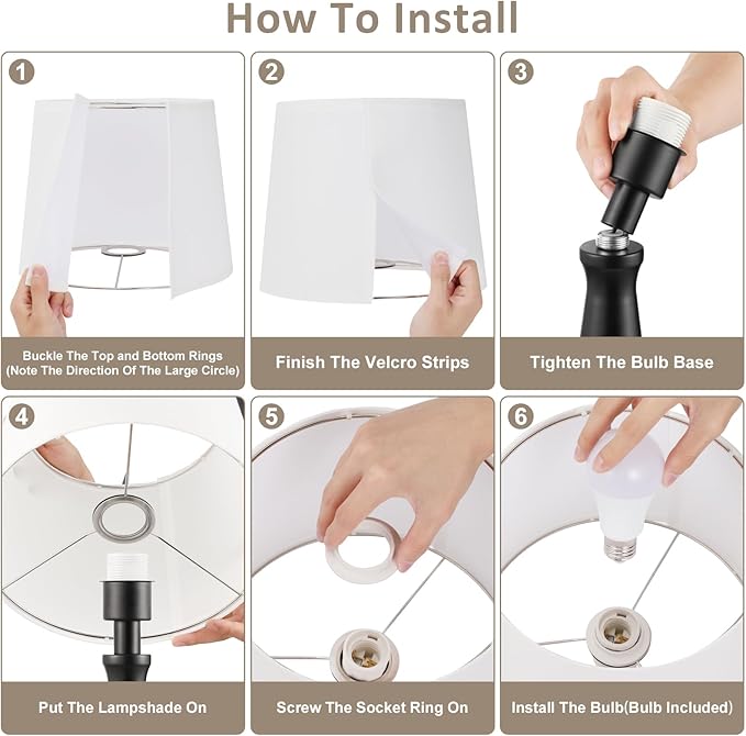 • 【Fun & EASY TO INSTALL】The simple hands-on installation adds a lot of fun to your noisy life! Please follow the attached installation manual, just a few steps to get a beautiful night stand lamp in no time.The installation of our table lamp is designed to help minimize unnecessary packaging waste and save transport fees that enables us to provide you more cost-effective products, so you can buy high-quality items at a more affordable price.