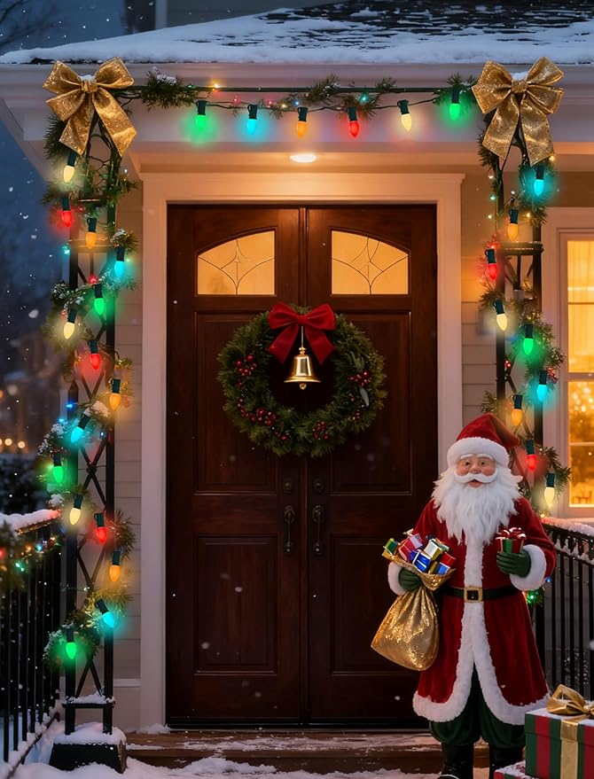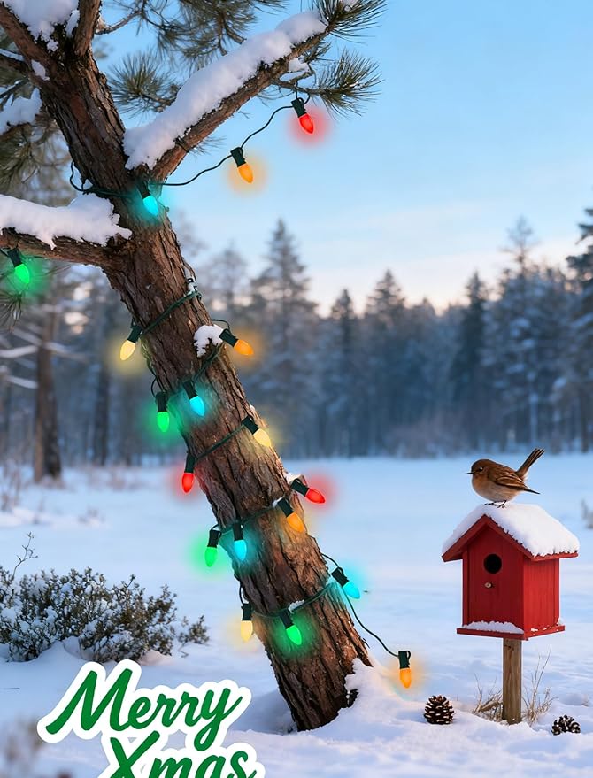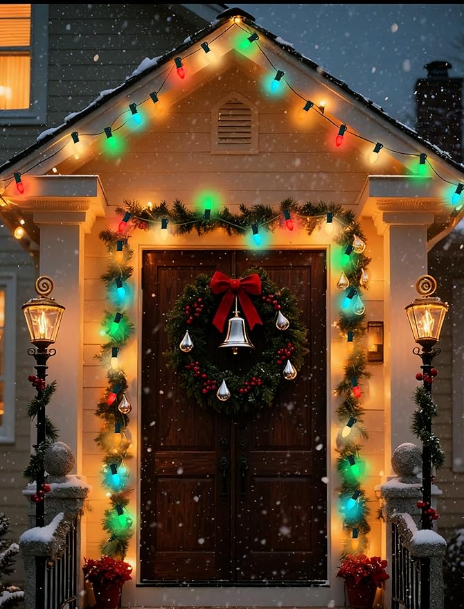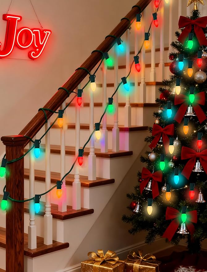 • Quick and Easy Installation: Set up outdoor string lights, night lights, and salt lamps in minutes. Install the light string first, then screw in the bulbs. C7 LED Christmas lights are ideal for home decor, Christmas, holiday celebrations, winter displays, shops, backyards, gardens, patios, walls, gates, courtyards, Christmas trees, windows, and party settings.
