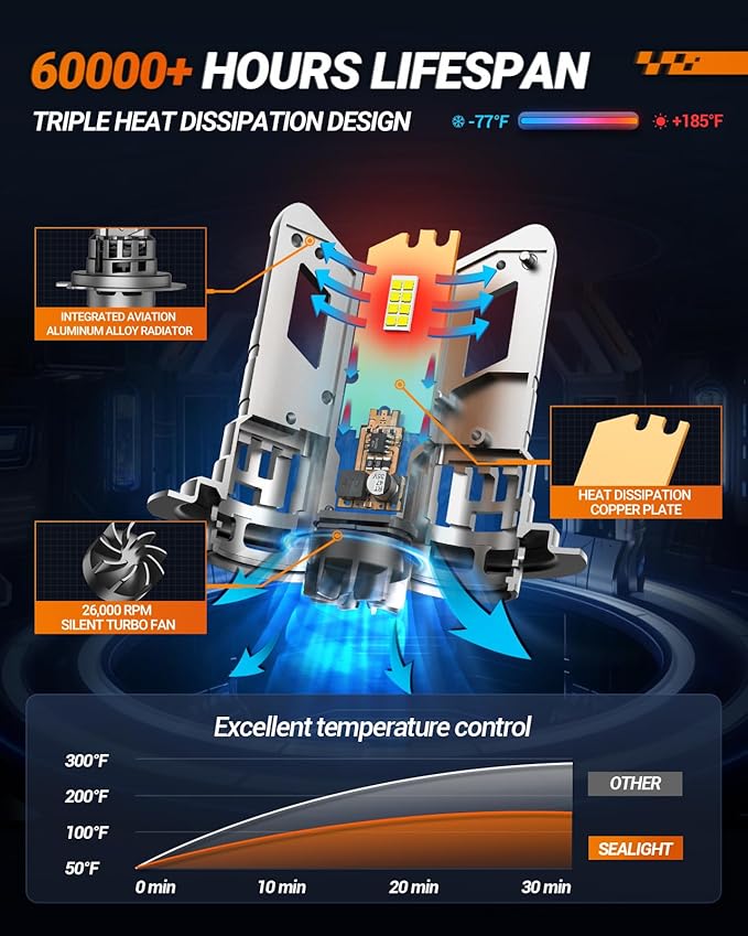 • 【99% Vehicle Compatibility】Thanks to the built-in smart IC driver and Canbus-ready design, SEALIGHT H7 bulbs and fog lights are highly compatible with 99% of vehicle systems, ensuring seamless integration