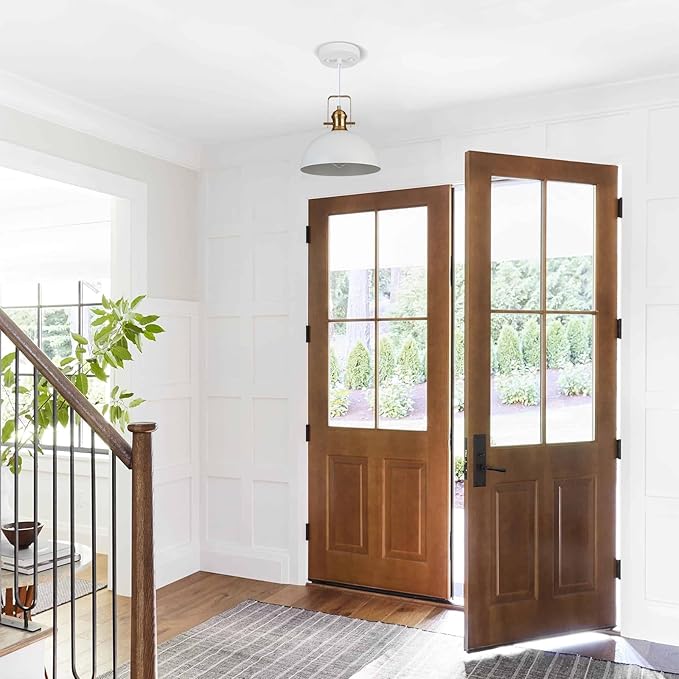 • Vintage Design: 1-Light Pendant lighting for kitchen island, this farmhouse pendant lights for kitchen is made of sturdy metal construction in white finish and inner white finish The island lighting fixtures hanging is ideal for home, dining room, kitchen island, warehouse, entryway, corridor, restaurant, cafe, bar, club, barn,working bench.Plus, it’s compatible with a dimmer switch,so you can set the ideal mood.