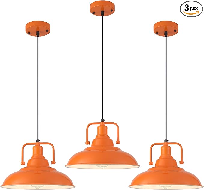 Orange Pendant Light 12.5 inches 3 Packs, Farmhouse Pendant Light, Industrial Pendant Lighting, Kitchen Pendant Lights, Pendant Lights Kitchen Island for Dinning Room Entryway Barn