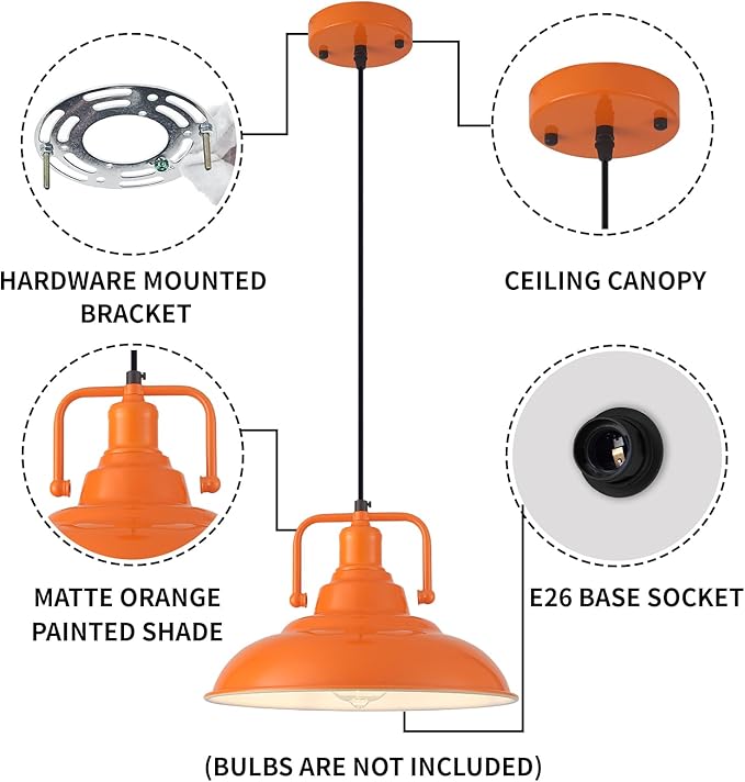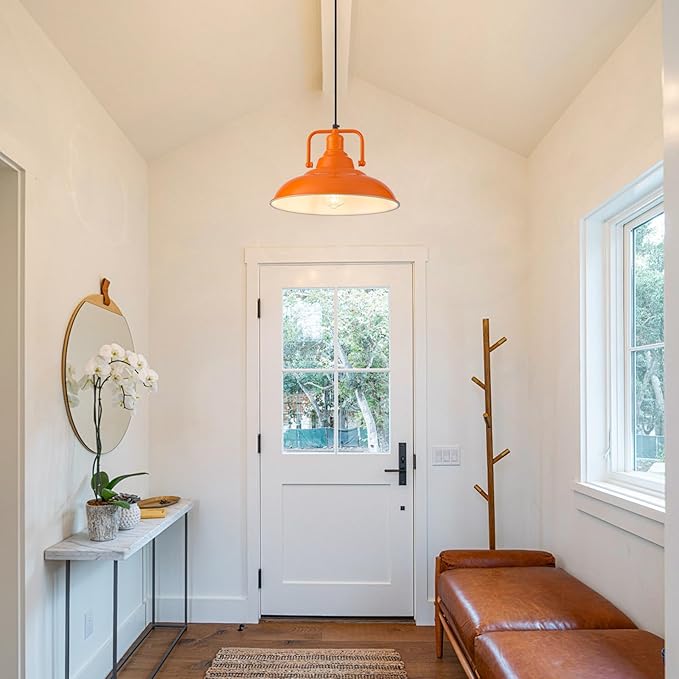 Unique Design:This orange pendant light is built with reference to the retro industrial style design, creating a unique design style. It is not only a home lighting tool, but also a decorative piece, suitable for hallways, living rooms, kitchens, bedrooms, bars and many other places