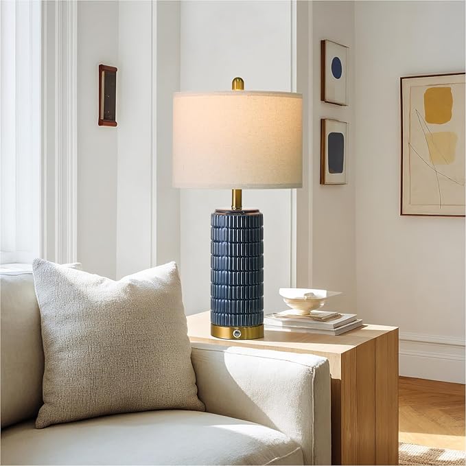 • Modern Ceramic Lamps:This farmhouse lamps for night stands, with a blue ceramic lamp body with gold base, not only boasts a simple and elegant design but also easily integrates into your house decor. This blue table lamps for living room is particularly well-suited for modern or farmhouse style interiors. This ceramic nightstand lamp adds a glance of elegance to your home, perfect for Home Office Setup, Bedroom Decor, Living Room Enhancements, New Apartment Setup and Home Renovation Project.