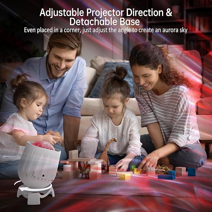 • 360° Projection: Twelvetooo northern lights projector is equipped with a removable base that can be freely adjusted to any angle—on walls, ceilings, or unique corners! Say goodbye to frustrating shadows and limited views. Achieve perfection with 4 brightness levels and 3 speed modes (fixed, slow, fast). Easily create the perfect setting for sleep or lively gatherings