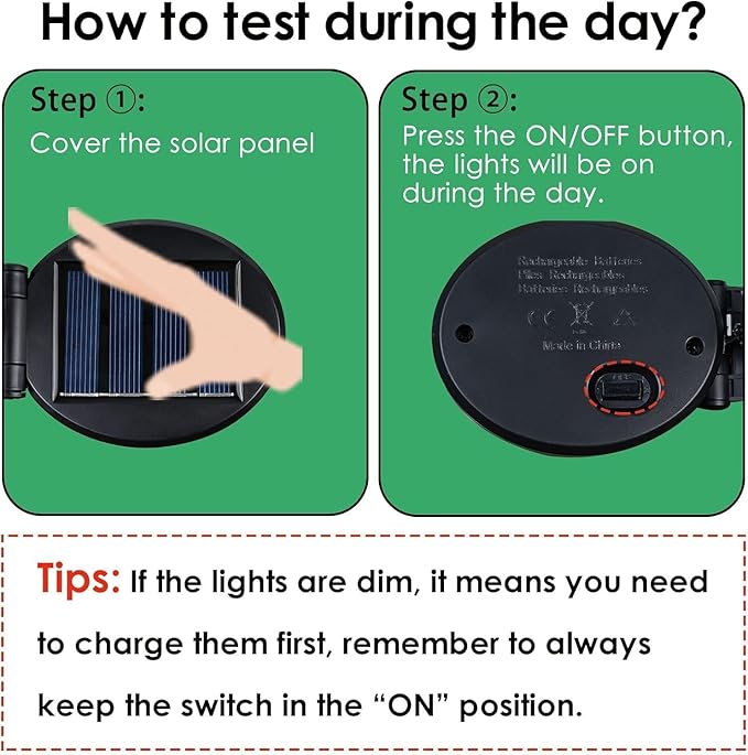 • [TWO LIGHTING MODES]: Christmas LED Lights are designed with two firefly lighting modes for your different outside decor. ALWAYS ON: Just put the button MODE, solar Christmas firefly lights outdoor waterproof can keep continuous lighting at night. FLICKER ON: Just put the button MODE again, solar yard lights can flicker on continuously at night.