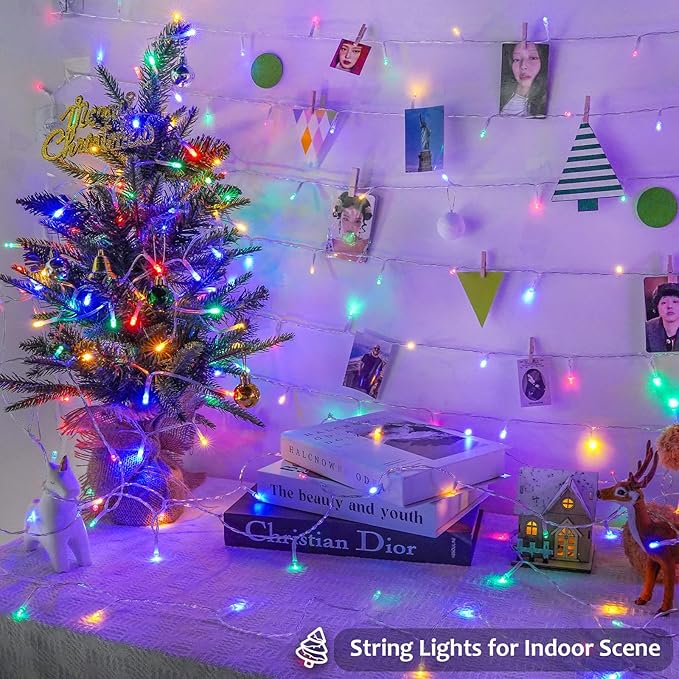 • Ultra-Bright and Durable Battery Powered String Lights: Each Christmas string light is 33 feet, features 100 super bright LEDs and a waterproof battery case with 8 lighting modes to ensure longevity and reliability. The multicolor Christmas lights emit a classic, romantic and warm glow in the dark, making them an ideal choice for indoor and outdoor Christmas decorations. These fairy lights are perfect for Christmas, birthdays, parties, weddings, creating a cozy and joyful atmosphere.