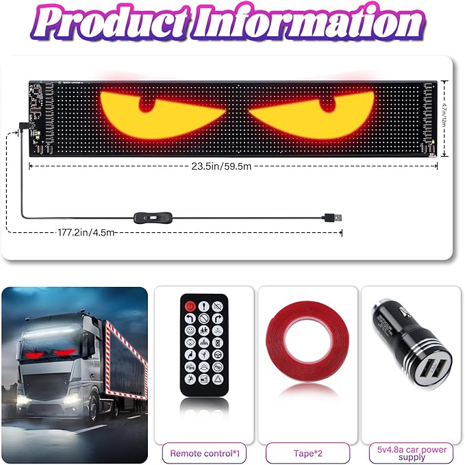 • 📱 FREE App = 200+ Moving Car Eye Effects (Type "BACK OFF!" in Blood-Red!) Turn boring commutes into horror films! Program your car's new 'eyes' to pulse to bass, slow-stalk prey, or spell warnings—all via free iPhone/Android app. Sync multiple cars for parade light battles! Pro tip: Try the 'Vampire Gaze' mode at drive-ins!