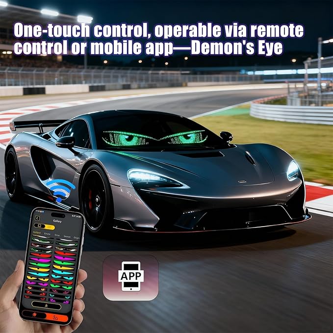 • Programmable LED Eyes for Cars & Trucks - Transform your vehicle with dynamic devil eyes, scrolling text, and custom animations via free iOS/Android/Google Play app. Featuring waterproof adhesive coating and ultra-bright LEDs, these ojos led para carro kits bend seamlessly on curved windshields. Includes 13ft USB-C cable for car chargers/power banks – perfect for trucks, SUVs, parties, and storefront displays.