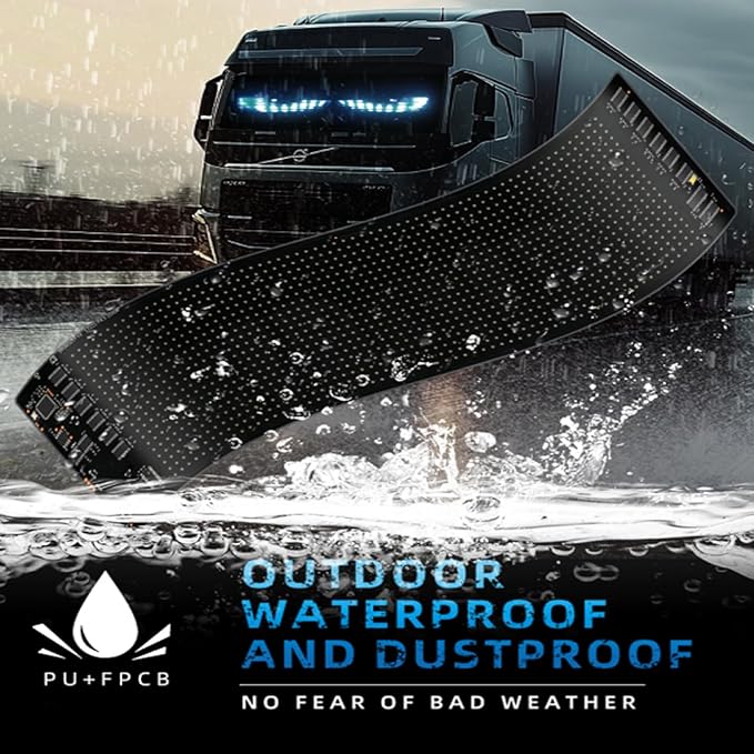 • Pro-Grade Customization - Upload GIFs, logos, or DIY patterns with intuitive app editor create unique light shows. Dual-layer circuit boards prevent overheating, while ultra-wide panels fit semi-truck windshields.
