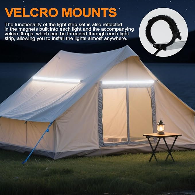 • 【EASY TO INSTALL】Each trailer lights has a built-in strong magnet that instantly attaches to metal frames. It also comes with eight thick Velcro straps that can be threaded through the light strip, allowing for secure installation on tents, awnings, and car roofs without the need for glue. Removal leaves no residue.