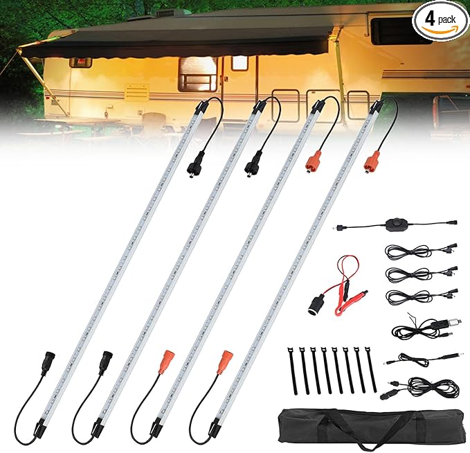 • Included Components : 4 Pcs awning light bars,1pc car charger, switch, extension cable