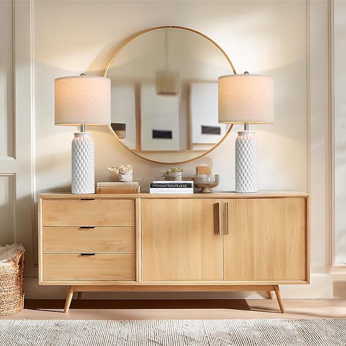 27" White Modern Ceramic Living Room Lamps Bedside Lamp Set of 2 for Bedroom Decor Farmhouse Table Lamp for Living Room Office Dorm