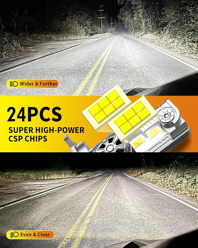 【900% INCREASE IN BRIGHTNESS】Elevate your driving experience with our high-performance H4/9003/HB2 light bulbs, featuring 24 advanced chips per bulb and delivering a staggering 50,000 lumens per set. Utilizing cutting-edge Z10 technology, these 9006 bulbs offer superior, efficient illumination, ensuring enhanced visibility and safety during nighttime driving.