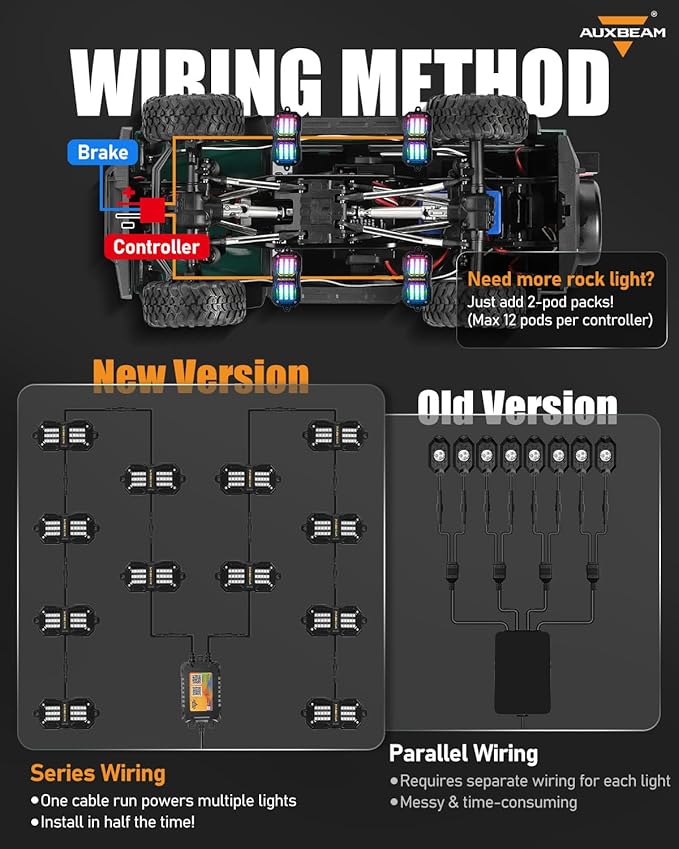 • ‌EXPAND YOUR ROCK LIGHT SYSTEM:‌ Simply expand your existing setup with 2-pod packs. To ensure optimal performance, limit each controller to a maximum of 12 pods rock light