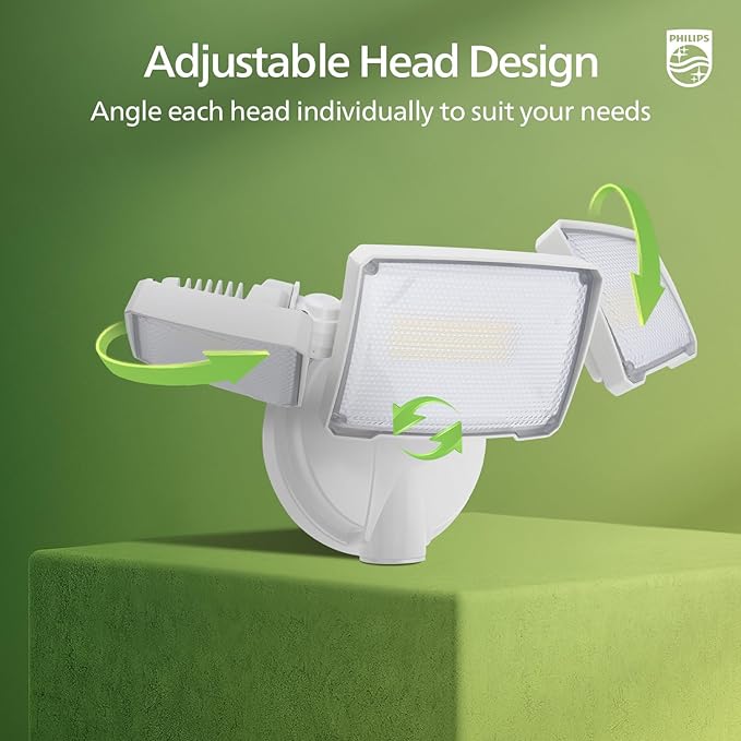 Philips 72W 7400LM LED Flood Lights Outdoor, Switch Controlled Aluminum Security Lights, 3 Adjustable Heads, Wall Mount, 5000K Daylight, Waterproof for Yard, Garage