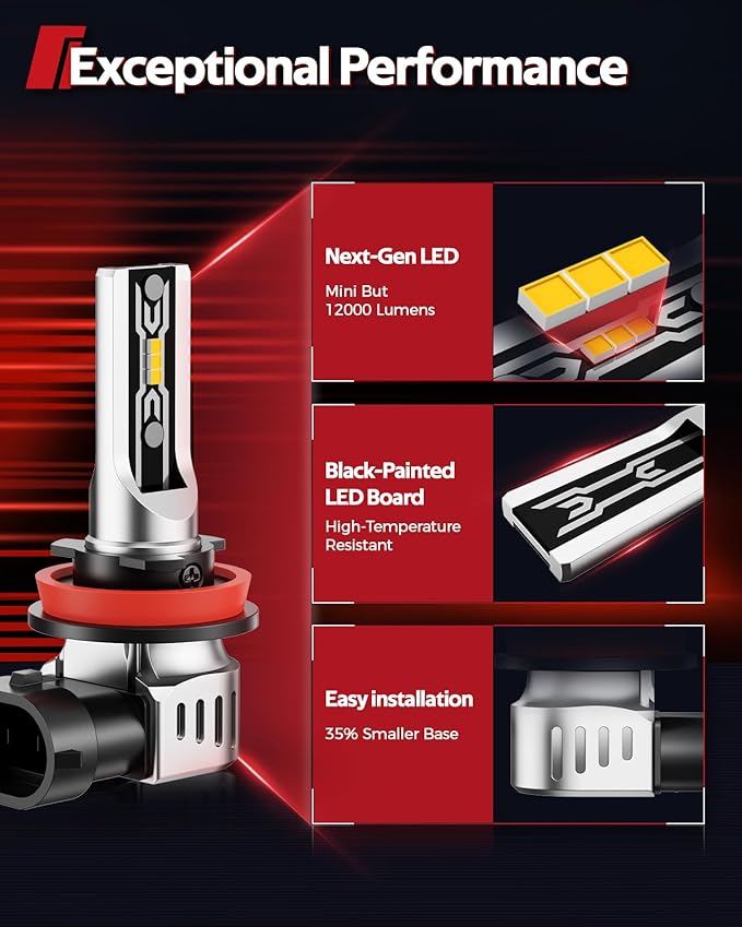 • 1:1 OEM Size, 3-Minute Quick Install: Upgrade your lighting in minutes—no tools, no wiring, no hassle. The compact 1:1 design fits perfectly into your factory housing, ensuring a seamless, secure installation. Say goodbye to bulky bases and hello to the easiest H11 Yellow LED fog light bulb upgrade you’ve ever made.