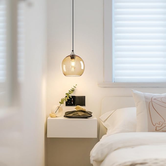 • 【Unique Design】This pendant light fixtures features a unique and stylish design, the light brown globe glass shade shows off the bulb and maximizes its light to create the room of your dreams! The sand nickel finish of metal part completes the look, showcasing your personal decor style