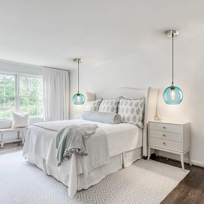 • 【Unique Design】This pendant light fixtures features a unique and stylish design, the light blue globe glass shade shows off the bulb and maximizes its light to create the room of your dreams! The sand nickel finish of metal part completes the look, showcasing your personal decor style