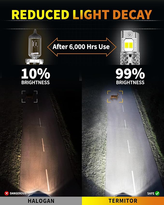 【Experience a Blazing 900% Brightness Boost】Enhance your driving journey with our high-power bulbs, boasting 24 advanced chips per light and an astounding 40,000LM brightness per set. Powered by cutting-edge Z10 technology, these lights deliver dependable and efficient illumination, ensuring an optimal nighttime driving experience.