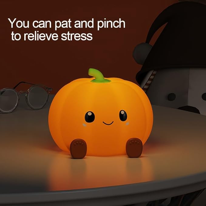 Pumpkin Night Light for Kids Adult, 3 Adjustable Brightness, USB-C Rechargeable, Baby-Safe Bedside Light, Toddler Sleep Training & Kids Room Decor