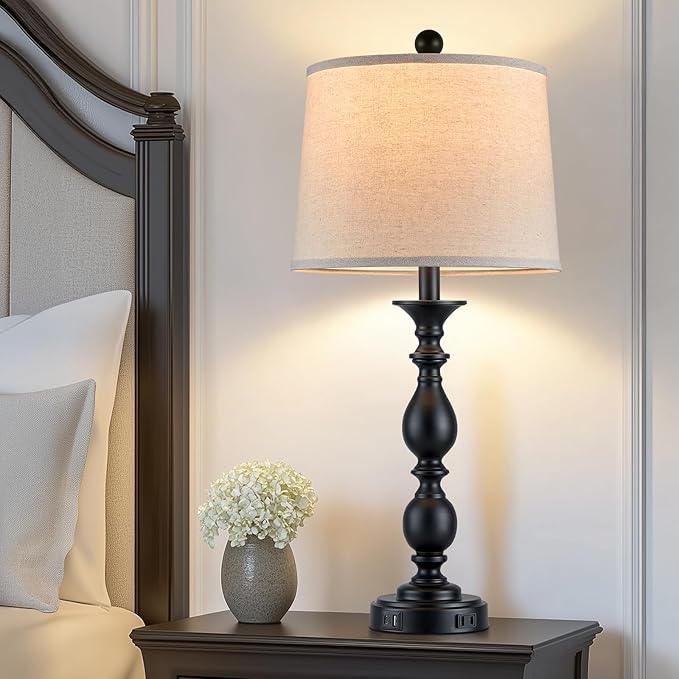 • 【Modern Luxurious Style Table Lamp】This meticulously crafted antique black table lamp blends retro charm with modern elegant aesthetic. The natural linen lamp shade adds warmth and charm. This is perfect bedside table lamp for the living room, bedroom or office, complementing classic, farmhouse or mid-century decor. (Note: the lamp shade requires assembly).