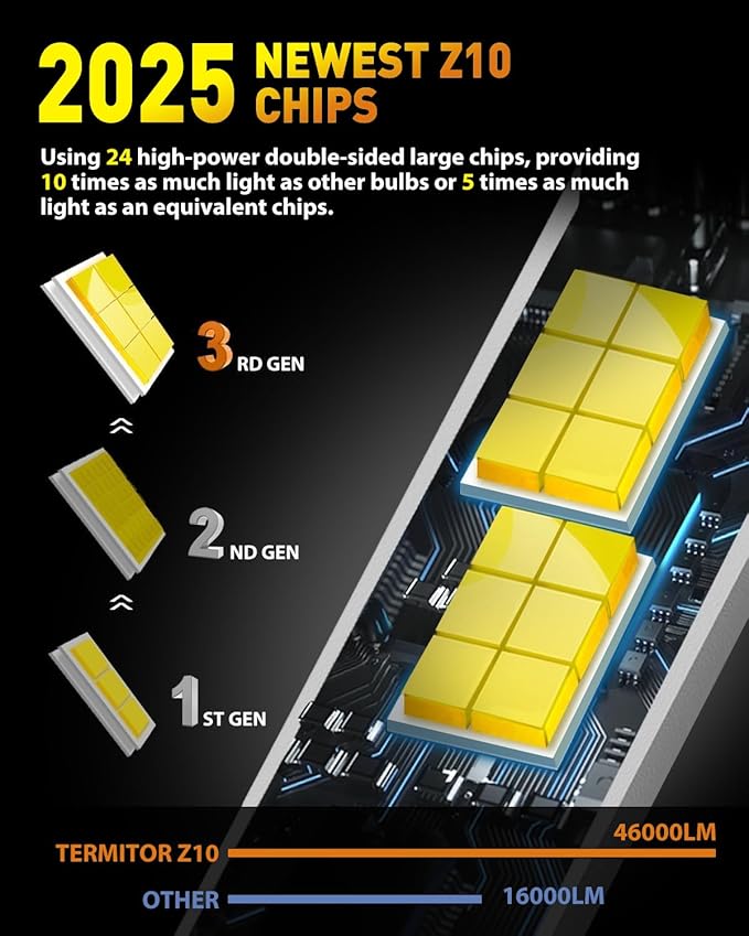 12X Brighter-Newly Enhanced: The Termitor H4/9003/HB2 fog light conversion kits feature 24 high-performance chips, delivering up to 12 times the brightness of standard halogen bulbs. Upgrade your nighttime driving experience by replacing dim, yellow stock bulbs with Termitor fog lights, offering superior illumination and enhanced visibility with a crisp 6500K cool white light for optimal light transmission