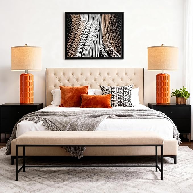 PARTPHONER 23" Farmhouse Modern Ceramic Table Lamp Set of 2 - Orange Bedside Lamps for Bedroom & Living Room, Nightstand, Desk, End Table