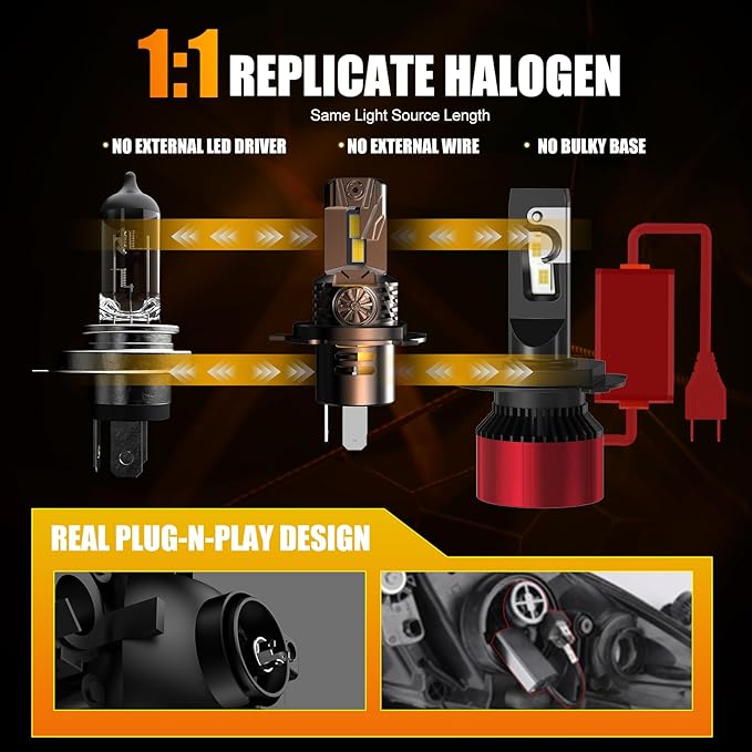 Upgraded H4/9003/HB2 Light Bulbs, 32000 LM Super Bright 6500K Fog Bulbs with Cooling Fan, 3 Min Plug and Play, Pack of 2 (H4/9003/HB2)