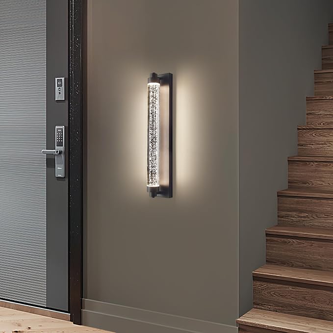 Black Outdoor Wall Sconce, 23.6inch Bubble Crystal Modern Wall Mounted Lights, 3000K-6500K Dimmable Waterproof LED Exterior Lamp Lighting for Porch, Garage, Patio, Living Room, Indoor
