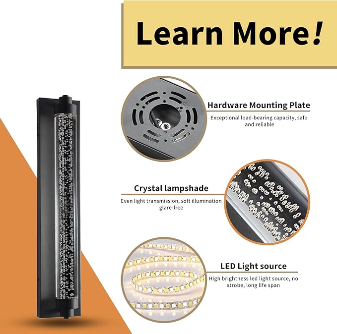 • Crystal Glass Design like Starry light: Indulge in a captivating ambiance with porch wall lamp, showcasing a minimalist geometric frame in a matte black finish, alongside unique crystal adorned with bubble pattern. As the light bends while passing through the crystal, it produces a stunning effect reminiscent of a celestial starry sky. Definitely a modern and chic addition to your outside space!