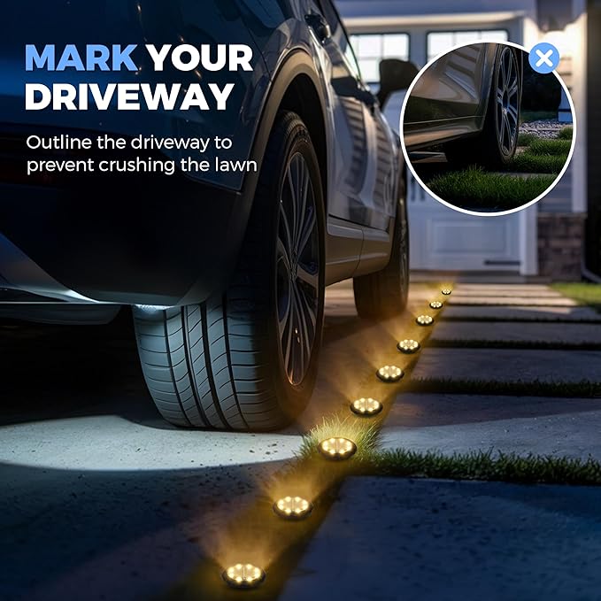 • 【Solar Lights Outdoor】This mini waterproof design (H 2.5" x D 2.8") is perfect as a cozy ambient light to spruce up your pathway, garden and driveway. This little guy packs a punch with 38,000-40,000 LUX brightness! It’s seriously all the light you need to jazz up your yard and keep paths lit, whether you’re decorating for a vibe or need real-deal illumination.