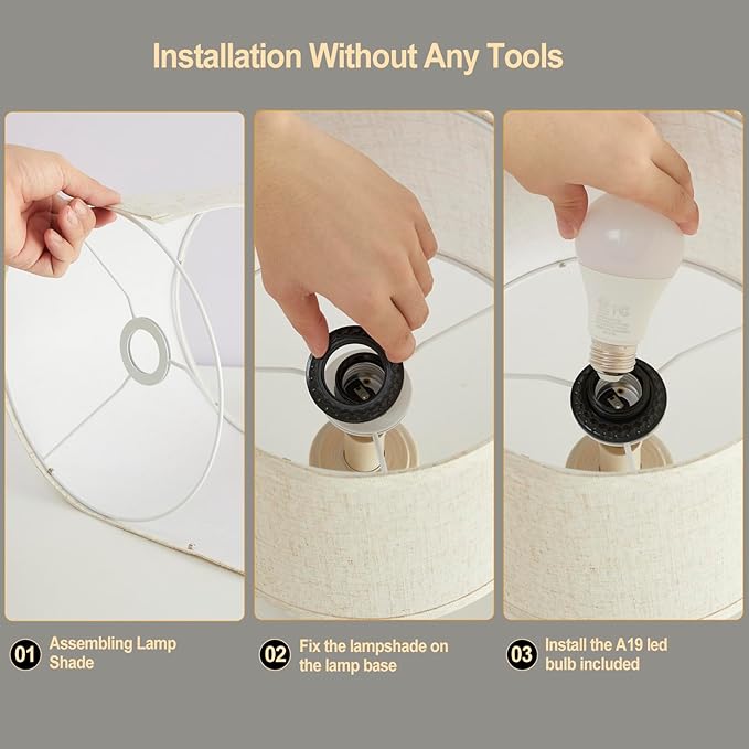 • Easier to Install: Our table lamps set of 2 are much easier to install. There are only 3 steps to assemble the table lamps once you receive them. You can put them in living room, bedroom, end table, nightstand, study room, children's room and so on. Hikczc table lamps for living room are also great as gifts for friends and family during the various celebrated holidays.