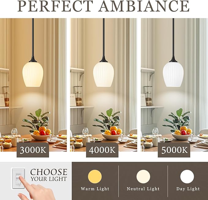 • Modern Stylish Design: The black pendant lights kitchen island features matte black metal with a bud-shaped milk glass shade, creating a bright and warm ambiance without the harsh glare of clear glass. Choose one pendant or several to create a dramatic focal point in a room