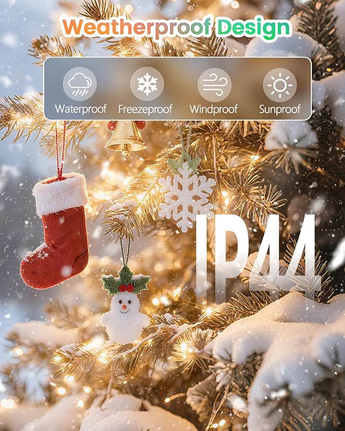 • [IP44 Waterproof Design]: Elevate your outdoor decor with our Christmas LED string lights. Engineered with IP44 waterproof LED bulbs, this permanent outdoor solution withstands all seasons—sun, rain, or snow—ensuring seamless performance. Note: Power adapter is not waterproof
