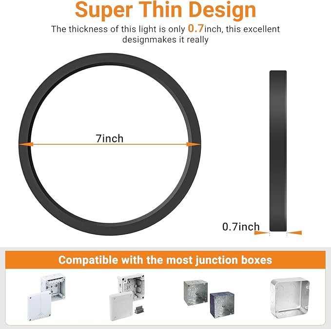 • 【Easy Installation】0.7 inch ultra-thin round led ceiling light can be recessed mounted and surface mounted in any ceiling area, the user-friendly base design can match 99% of junction boxes. There is no need to hire an electrician. We will provide installation instructions and one person can complete the installation in minutes