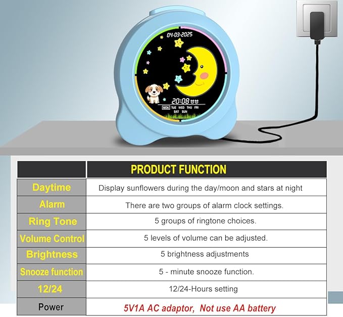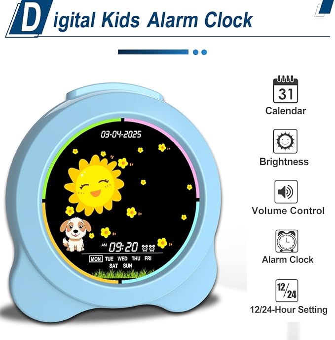 • Kids Alarm Clock Sun & Moon& Dog LED Display with Day & Date OK to Wake Clock with Night Light for Kids Children's Sleep Trainer Gift for Boy and Girls