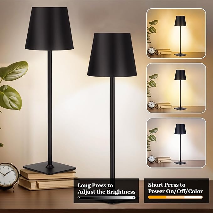 • Battery-powered Cordless Table Lamps: equipped with a 3000mAh long-lasting battery and fast charging function, each small portable table lamps can run for up to 4-20 hours after a full charge (low light mode), and fully charged via USB-C port in just 2-3 hours; Use our set to ensure your restaurant has a continuous and warm lighting atmosphere