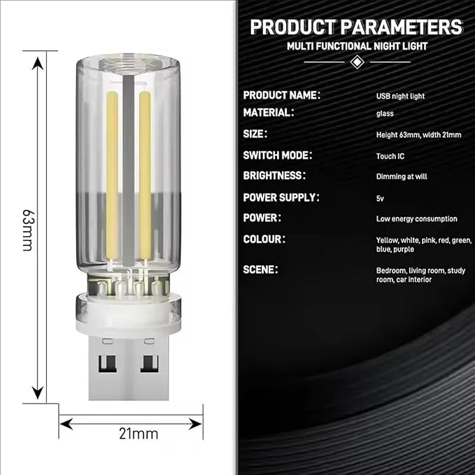 • 5.Sleek and modern usb night light design with low power consumption, offering a long-lasting led light source for cars, homes, or travel
