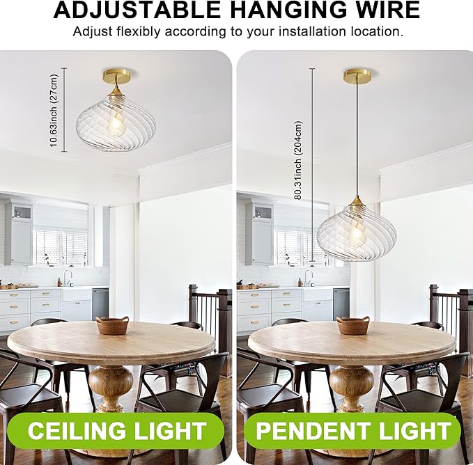 • Widely application: The pendant light features a stylish design, making it ideal for use as island lights for kitchen, farmhouse pendant light, bedroom pendant light, living room lighting, ect