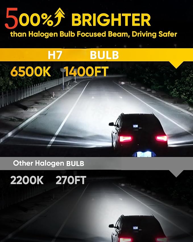 • 【Pure White】 The H7 Bulb has a 6500K white light that shines like a diamond. Even in a busy city, it will make people's eyes bright.