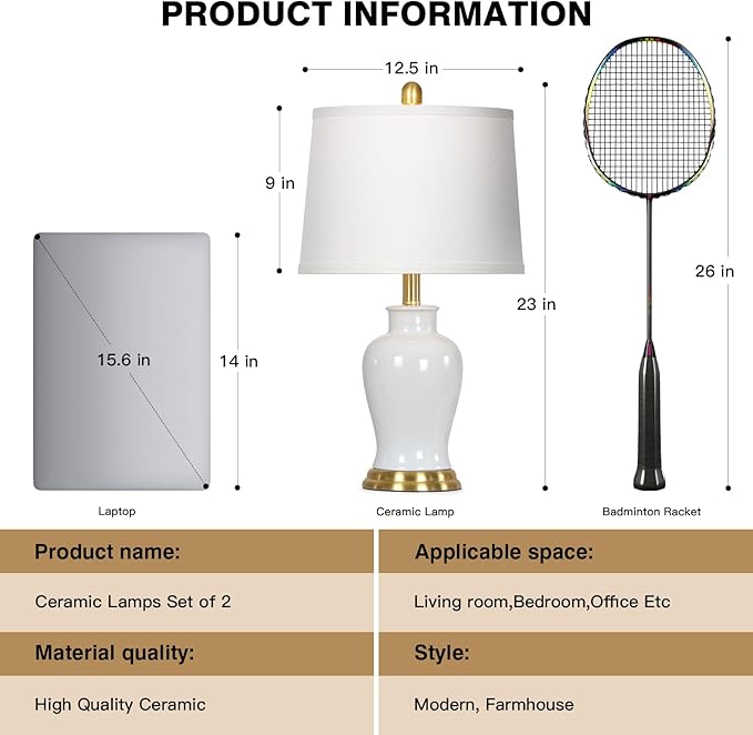 • 【Elegant Modern Style】The living room lamp features white ceramics and a brass color metal base. The perfect fusion of classic and modern, can add artistic atmosphere to your living room and bedroom. The ginger jar lamp is perfect for bedside, end tables, desks and beside sofas, add charm to your home or office. It's perfect decorative lamps to any living room, dining room, bedroom or entry