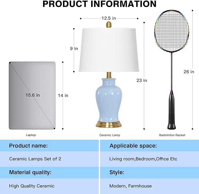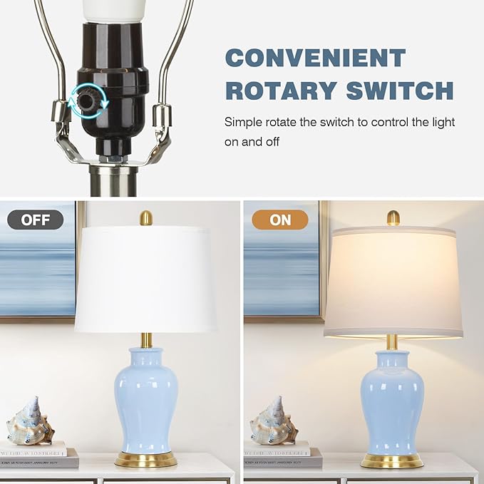 • 【Superior Quality 】The light blue ceramic table lamp is made of high-quality ceramic with smooth and shiny surface, durable, scratch-resistant and will not fade. The gold metal base adds a touch of luxury. Elegant coastal table lamps can enhance the overall beauty of your home decor. The modern design adds character and warmth to your house, creating a cozy ambiance
