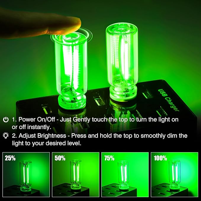 2PCS Car USB Night Light Touch Dimmable LED Filament Lamp, USB Plug-in Mini Glass Bottle Night Light DIY Mood Lamp Atmosphere Lights for Automotive Vehicle Bedroom Hallway Camping Decoration, Green