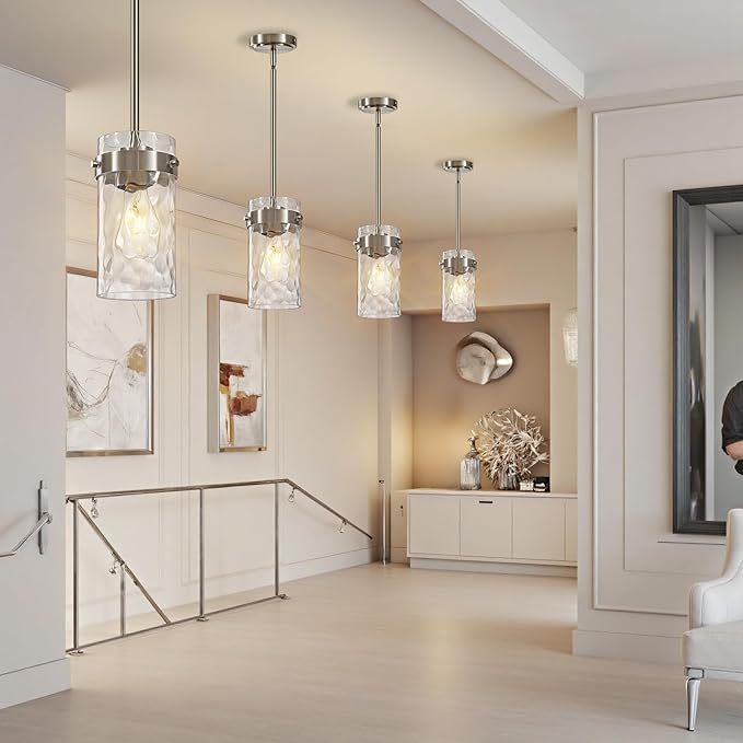 4.72" Hammered Glass Pendant Lighting for Kitchen Island 2 Pack, Modern Brushed Nickel Pendant Light Fixtures, Adjustable Ceiling Pendant Light for Kitchen Island Dining Room Bedroom Hallway